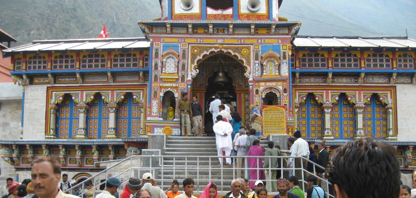 Having tried to persuade them for quite a few years, one summer, I finally got the opportunity to visit the Badrinath temple alongwith my parents. People who had recently visited the temple advised us that the place was really cold even during the month of June and we should carry enough woolens with us. Unfortunately the first week of June when we made the trip turned out to be the hottest period even in Badrinath. We had booked a Toyota Innova for the journey from Dehradun to Badrinath. The entire stretch was hilly terrain. It is recommended to take trained drivers who are used to driving on the hills instead of driving to Badrinath oneself. Remarkably there are good roads carved out on the otherwise dry and rocky mountains. We could see remnants of glaciers on our way. Thankfully we had booked ourselves at the Sarovar Portico in Badrinath. After an exhaustive drive in the summer heat, the suite in the hotel was a very pleasant respite. The view of the hills from the room was breathtaking. We had reached the hotel around noon and after lunch there was ample time for darshan at the temple.