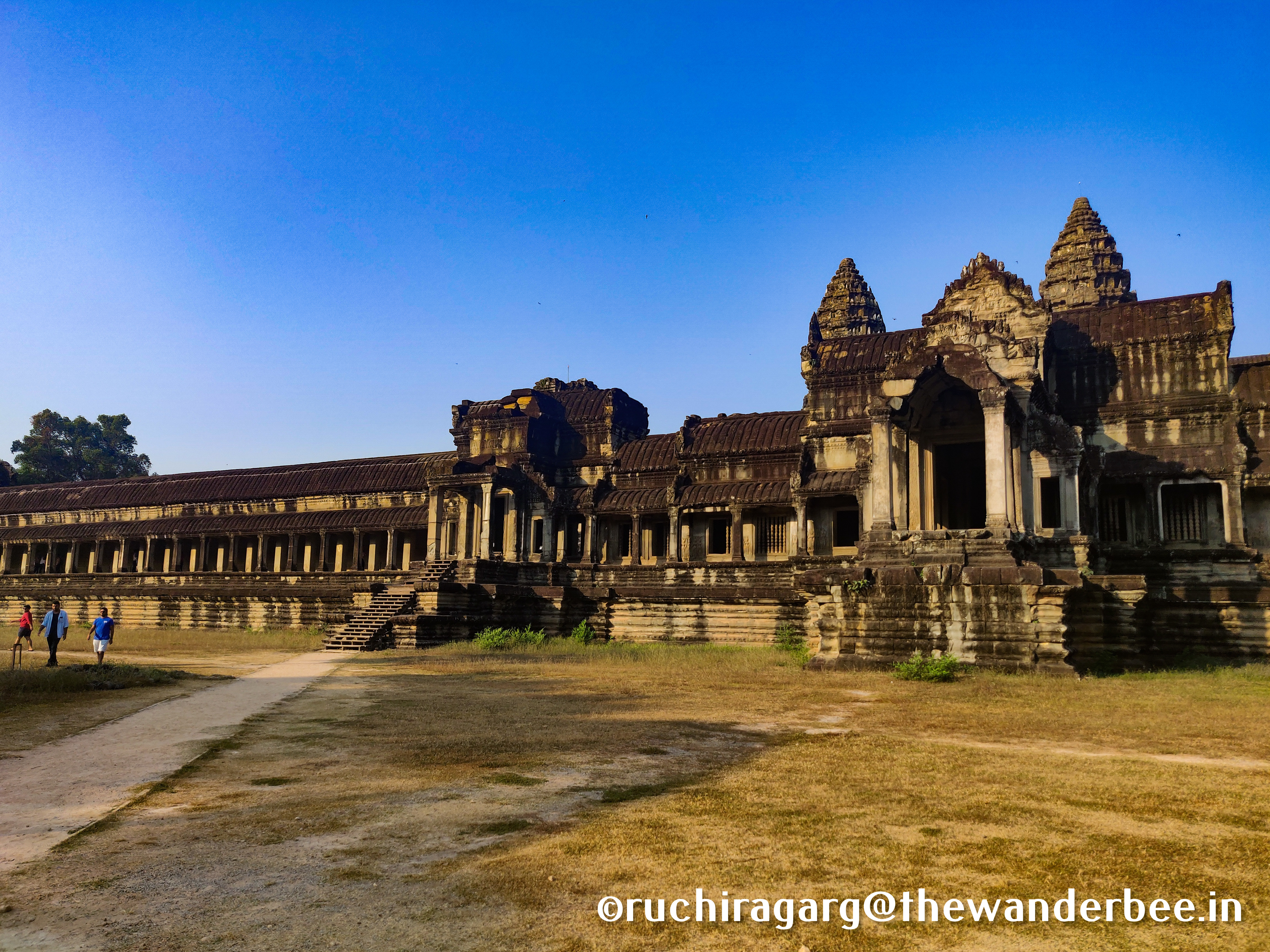 Stepping out of the aircraft at the Siem Reap airport in Cambodia, I felt I was walking into a resort. Used to straight jacketed glass windows and sliding doors and ugly looking gates projecting out from the building, the sloping thatched roof tops of the airport gates as we walked out of the plane was a very welcoming sight.