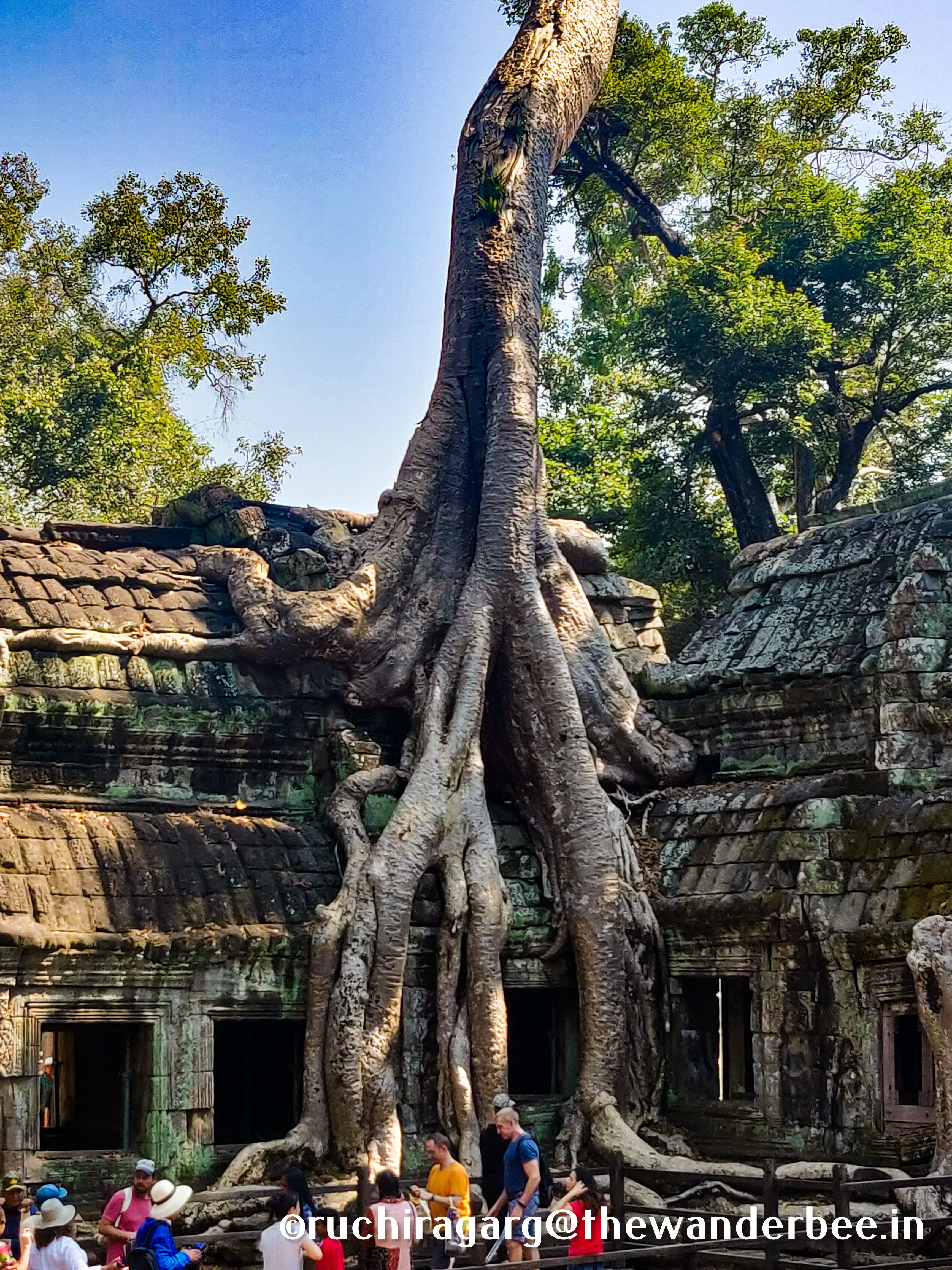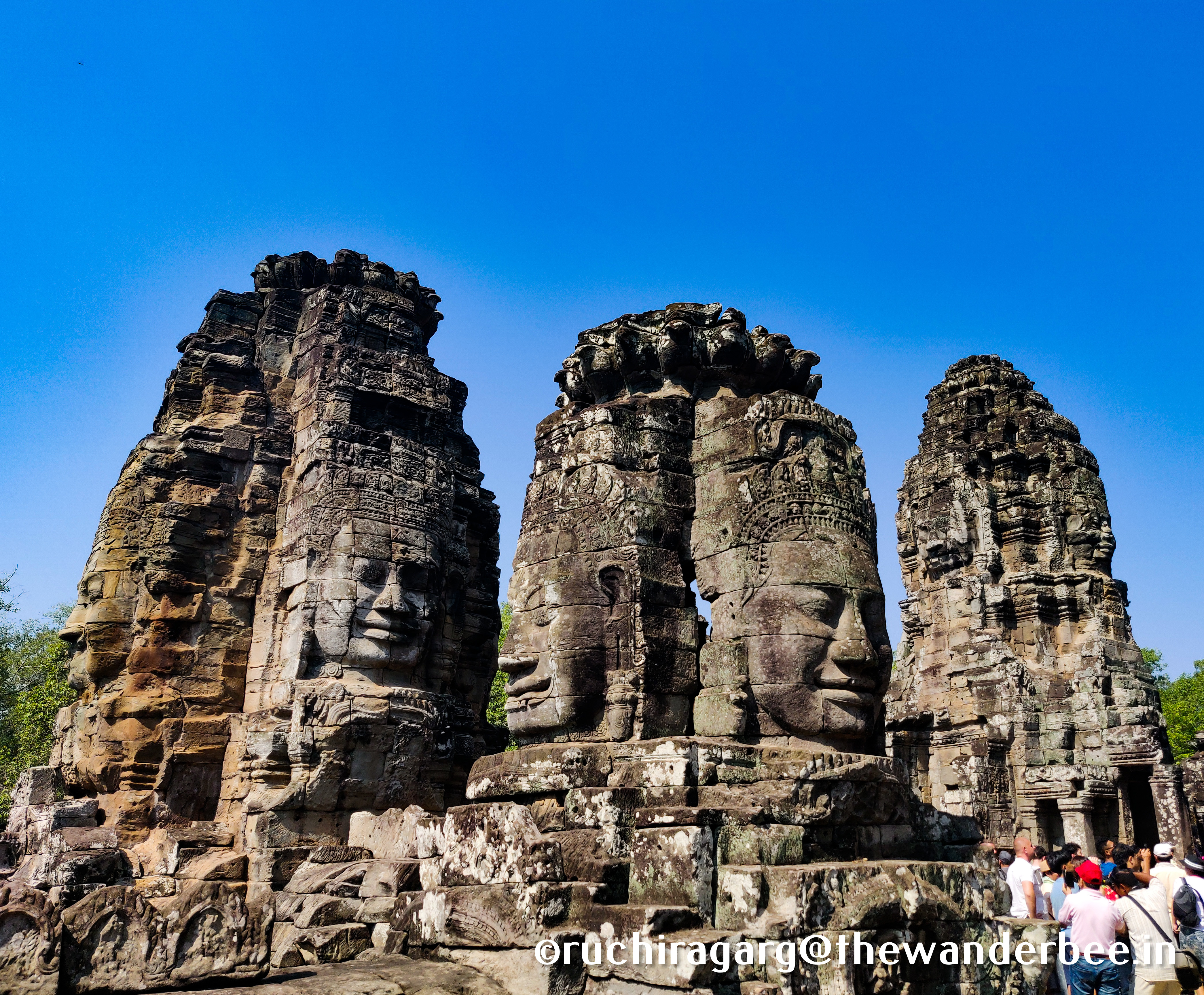 Cambodia has a much slower pace on the road as compared to the aggressive traffic witnessed in Vietnam just before arriving in Siem Reap. The primary attraction of Siem Reap are the beautiful temples in the ancient city of Angkor Thom. You get 1- day, 3 -day passes to visit the various temples. Since the temples require a lot of walking, a 1-day pass may not be sufficient. You can do Angkor Wat, Bayon Temple and Ta Prohm on the same day but more than that can be a very tiring experience. Angkor Thom is about a 30-40 minutes’ drive from Siem Reap.