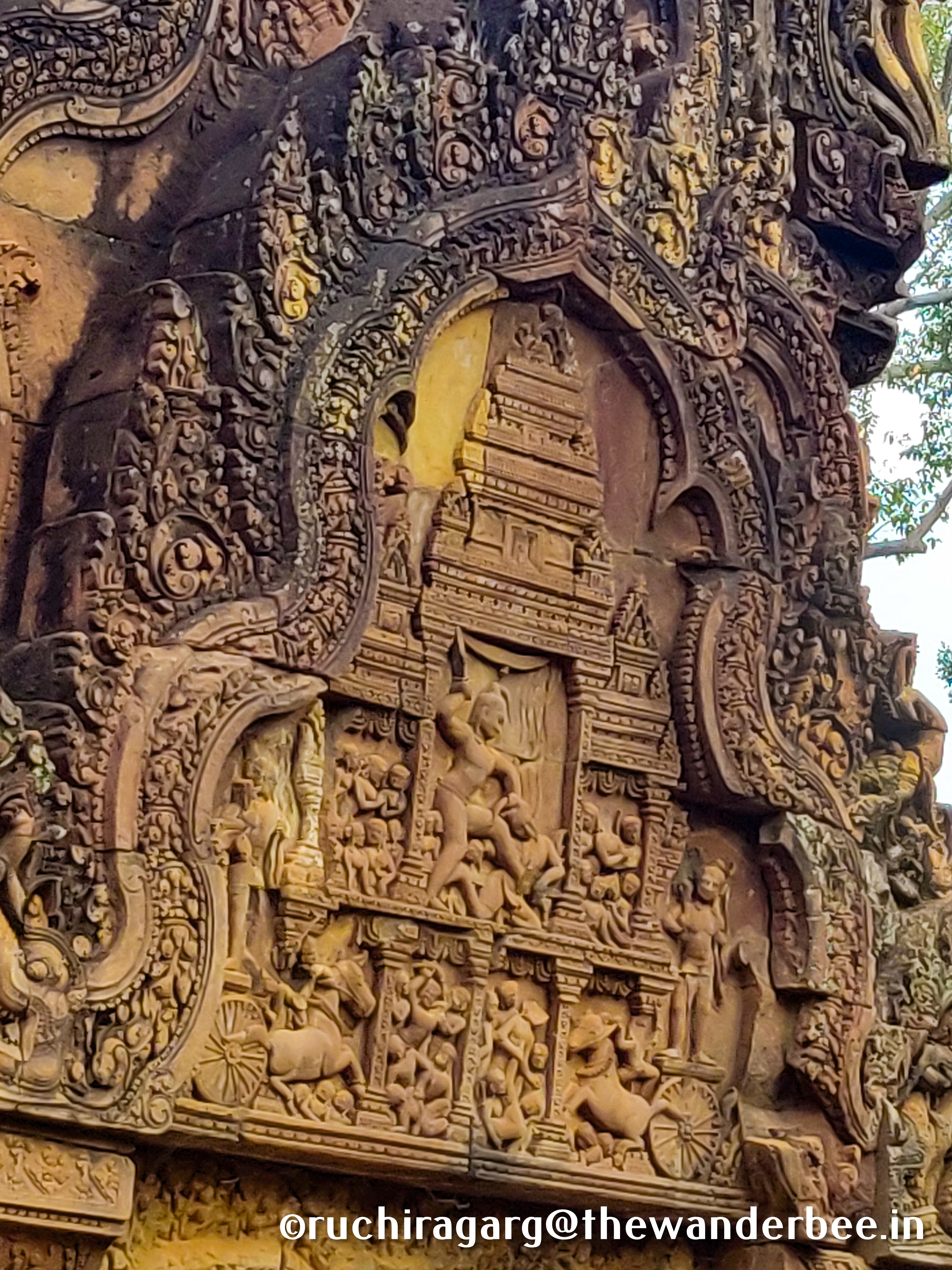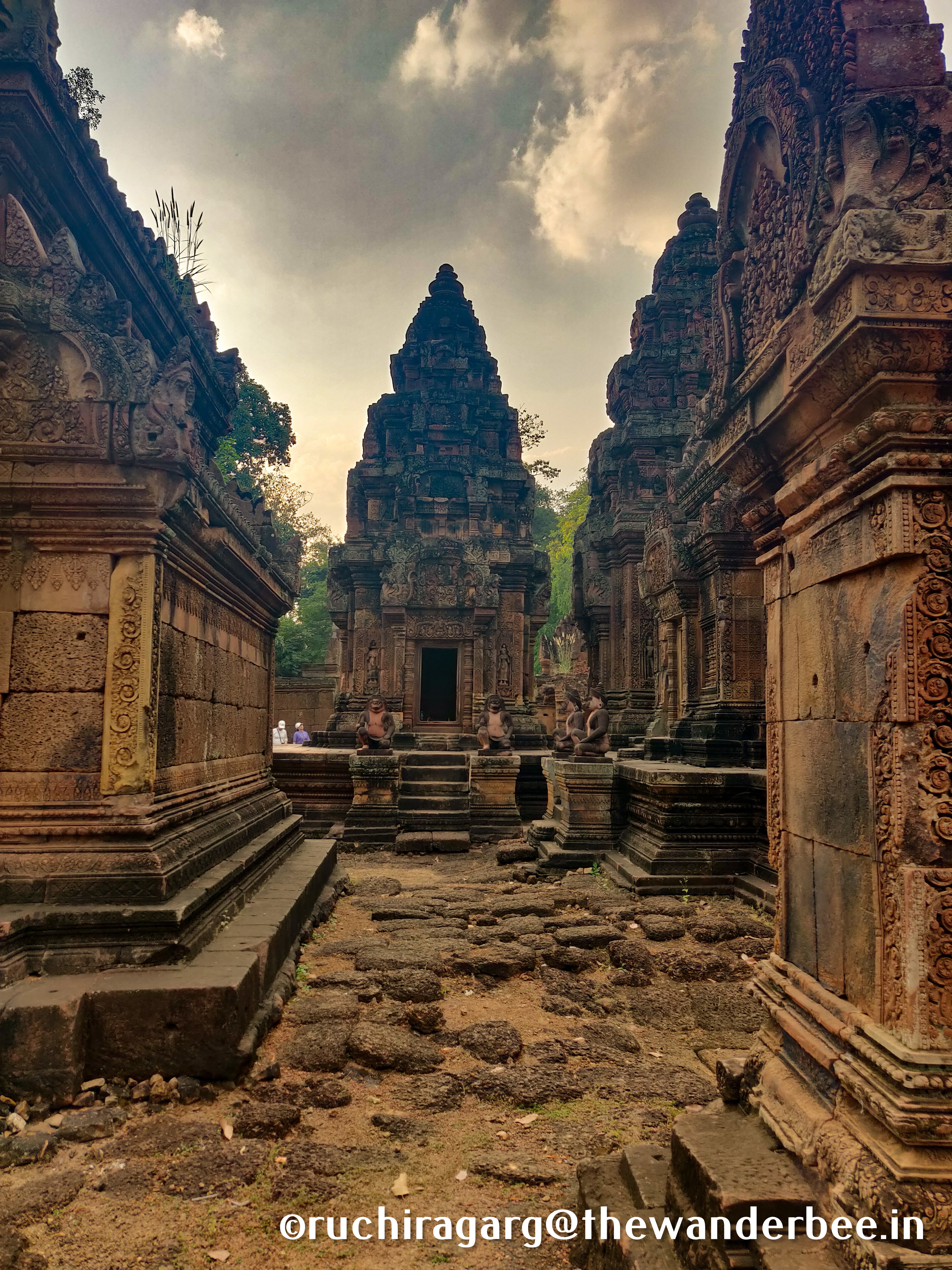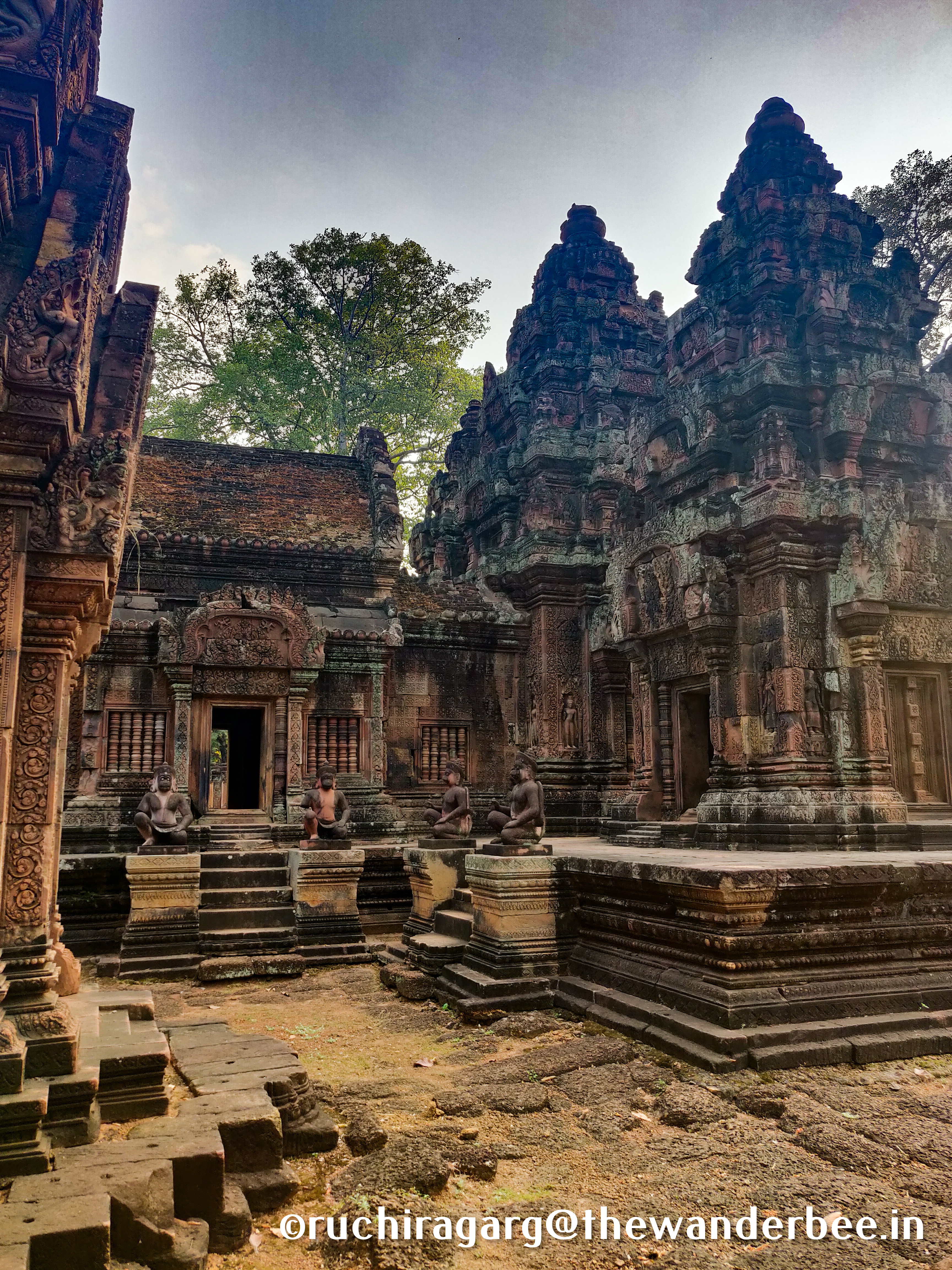 On our first day in Siem Reap, we went to the Banteay Srei temple. Though the name of the temple means Citadel of Women, it is dedicated to Lord Shiva. The carvings on the red sandstone of the temple have key episodes from Ramayana and Mahabharata. The inner square of the temple is not accessible though one can see the beautiful ruins from the middle square. There is souvenir market when you exit the market and it is definitely worth a look since the souvenirs are different from the ones you get in the city.