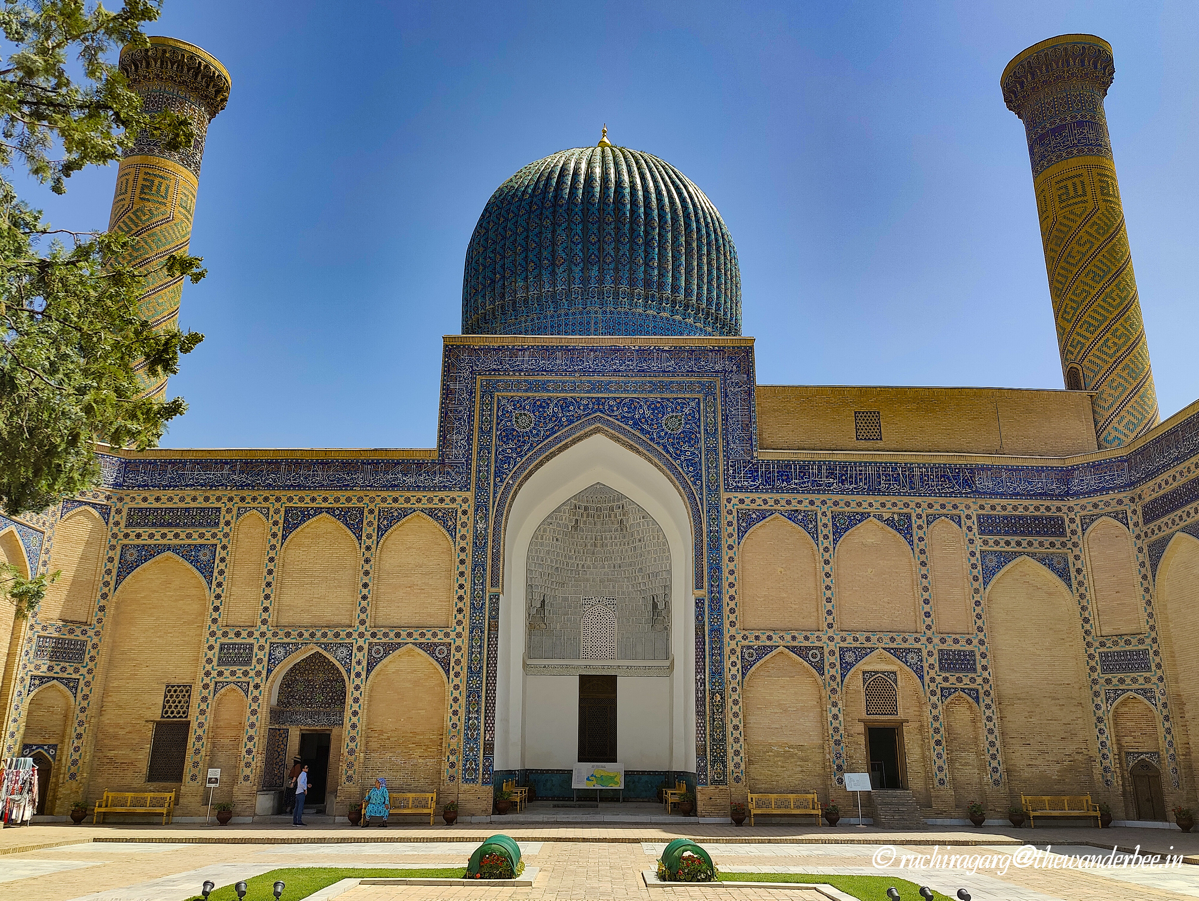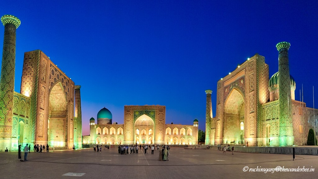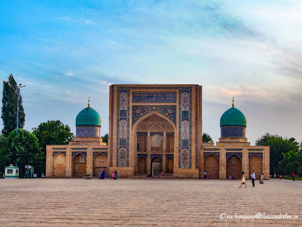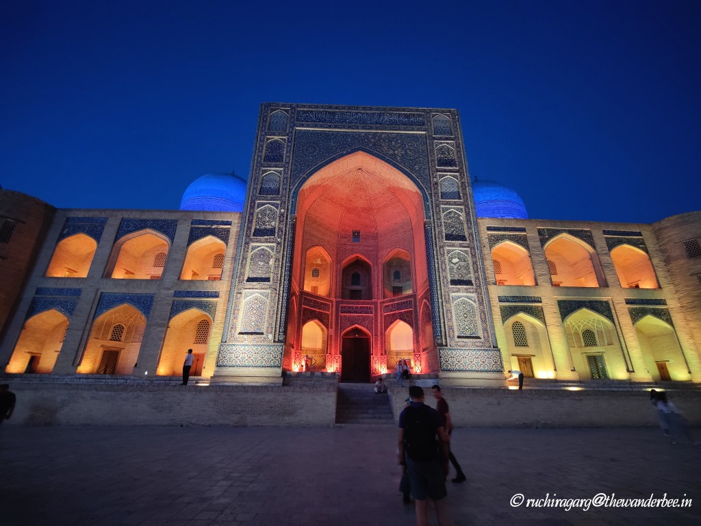 One of the most enchanting experiences here was to sit on the steps of the monuments, overlooking the grand square adorned with stunning architectural marvels. Would recommend visiting in the evening when you can appreciate the beauty both in natural daylight and under the illuminations at night which we were to experience across the monuments in Uzbekistan. This is a favorite spot for the residents as well and we were very glad to meet children who even danced to Bollywood songs for us!