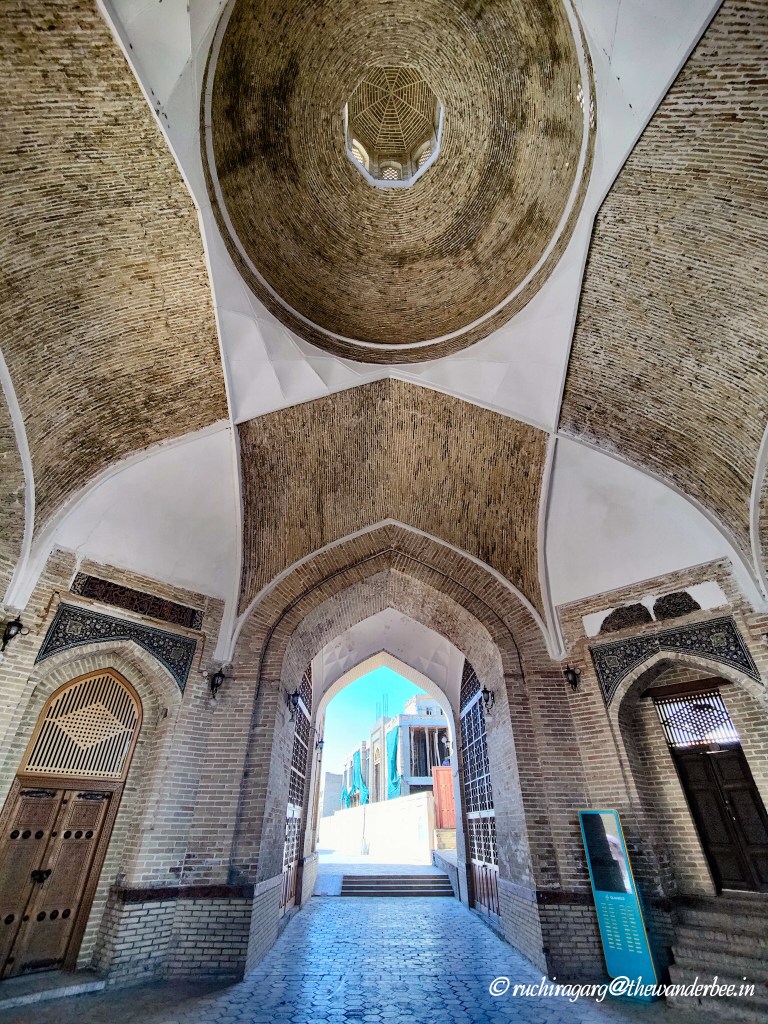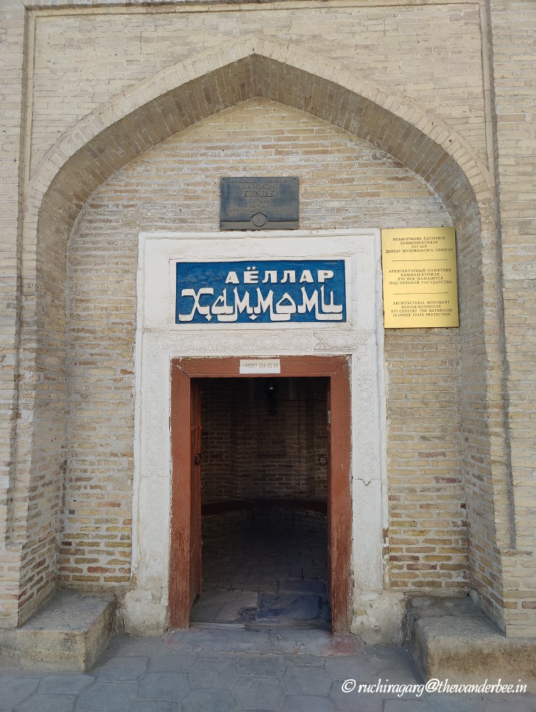 This historic and still functional hammam is situated behind the Kalon Mosque. It is the only hammam for women in Bukhara. You can visit the Hammam just to see it as well when it is not booked as it’s an architectural heritage site dating back to the 15th century. We were drawn to the unique experience of indulging in a traditional Hammam session within such a historically rich setting. Like Hammams around the world, this was an environment where modesty was left at the door. The communal experience, with its unabashed exposure, naturally facilitated lively conversations – perhaps why Hammams have a reputation of being gossip centers. Sitting across each other in full view of our bareness, the only thing that could keep one distracted, less embarrassed and stareproof was gossip. Multiple buckets of water were splashed on us as we were scrubbed, bathed and slapped all over. The ginger paste smeared all over and making us feel like marinated chicken as we felt its heat was the main differentiator from Hammam’s I have experienced in Morocco and Turkey. The massage was a quick affair and for all those readers who expect a Hammam to be a spa-like experience I would like to remind that it is essentially a bath house and the focus is more on cleaning than a massage and relaxing. Afterward, glowing from the experience, as we sat together sipping our green tea, we understood why Hammams are renowned as places for bonding. We found a renewed sense of self-acceptance. Shedding inhibitions and sharing this unique journey created a strong camaraderie among our group.
