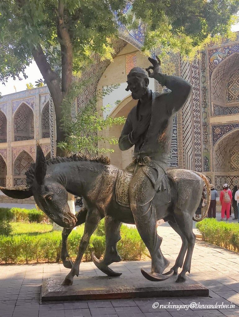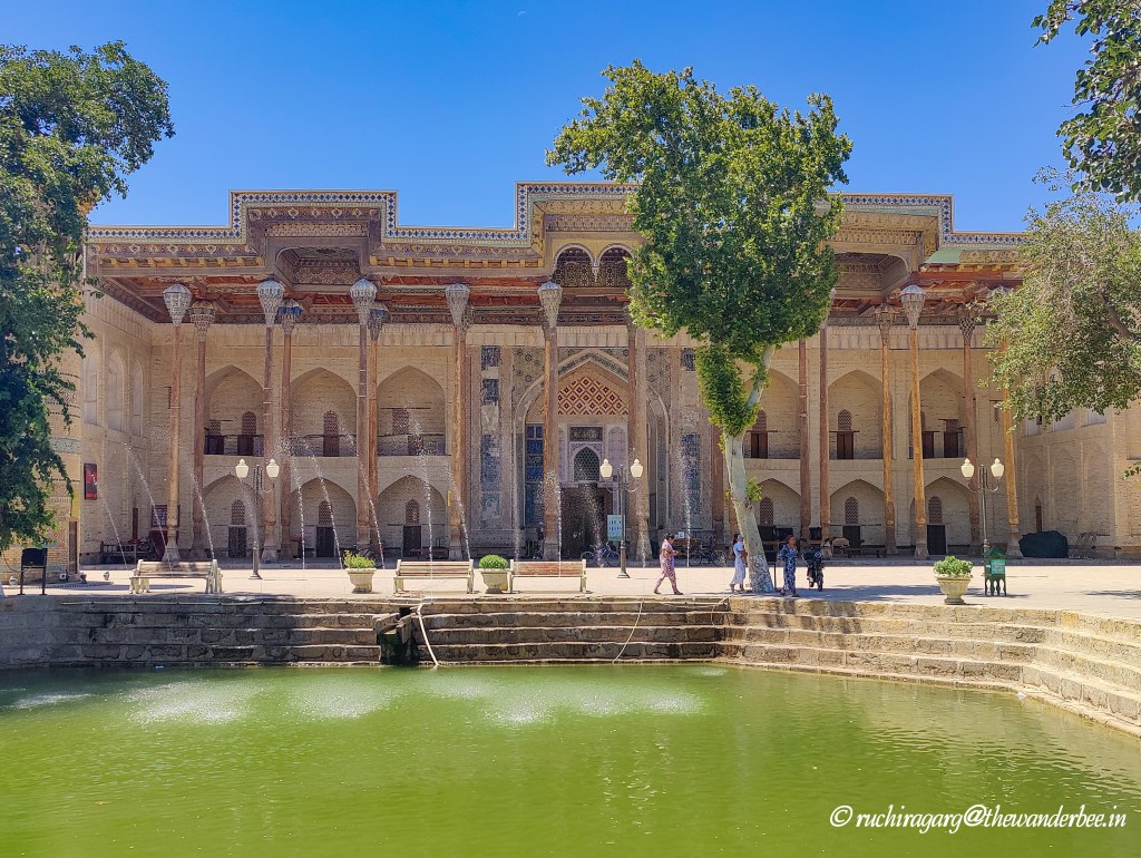 This is the area surrounding one of the few remaining hauz pools that have survived in the city of Bukhara. In the evenings, it transforms into a vibrant hub with eateries and kiosks lining its perimeter. Adjacent to the pool, you’ll find a park featuring a statue of Khoja Nasreddin, a beloved figure in Muslim folklore spanning from the Balkans to China. Nasreddin is renowned for his witty and sometimes sage-like persona, often depicted as a humorous or wise fool in countless tales and satirical anecdotes. I would recommend having dinner at one of the restaurants surrounding the pool but the kiosks next to the pool are not recommended as the service was slow and the food was not that great.