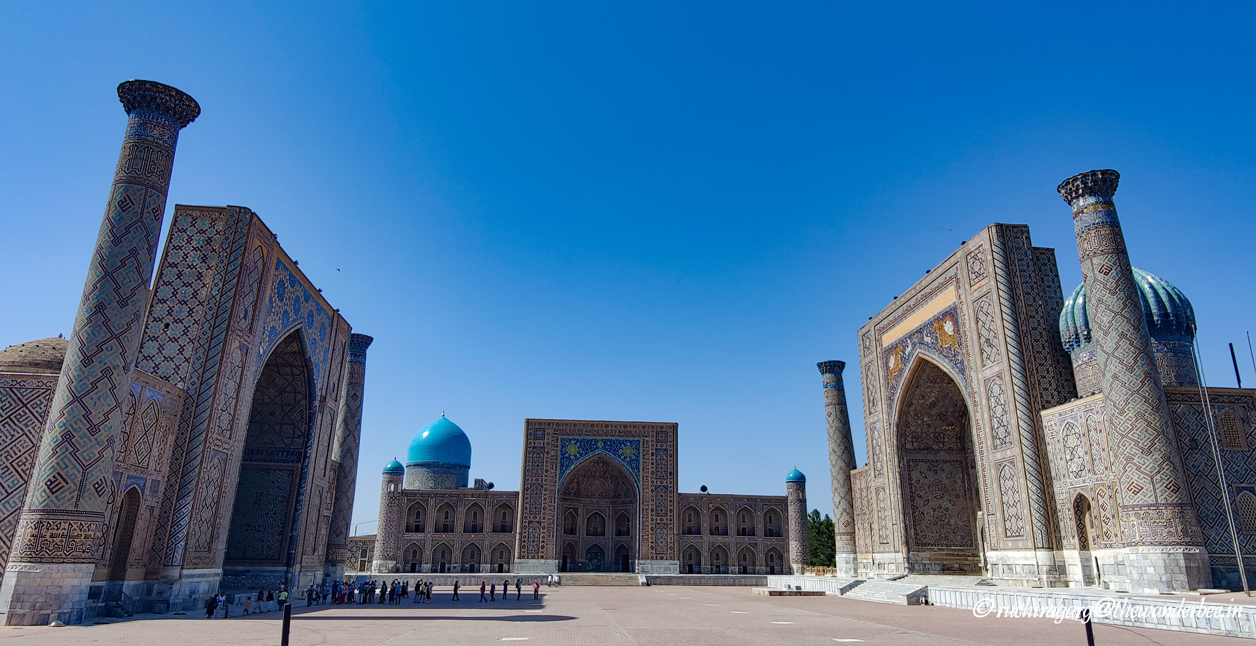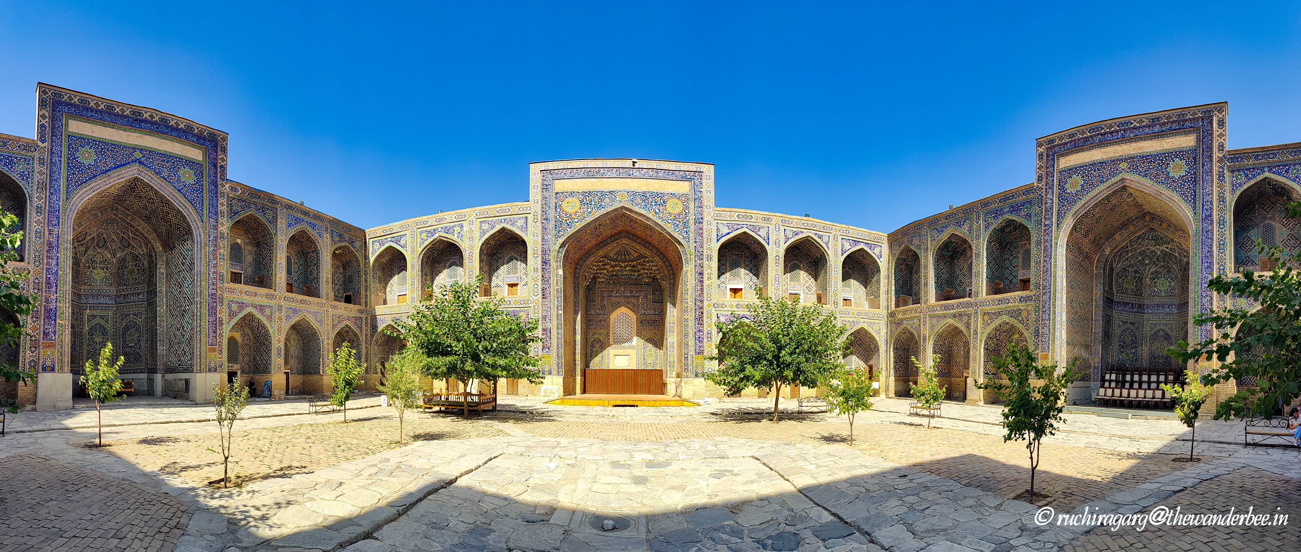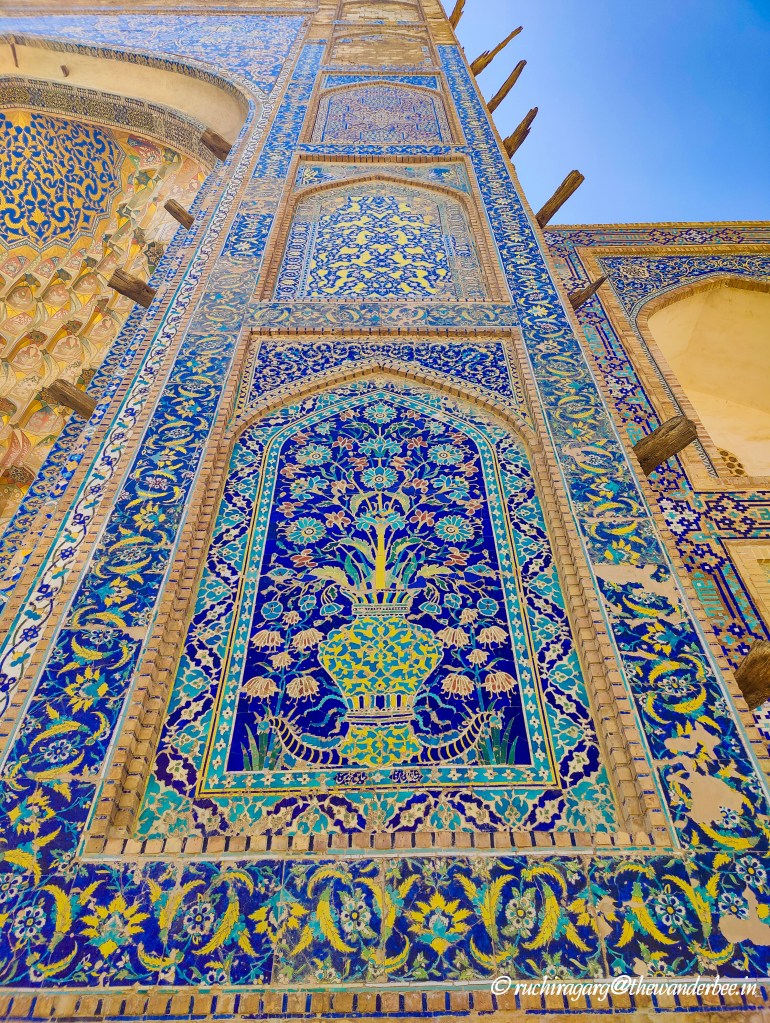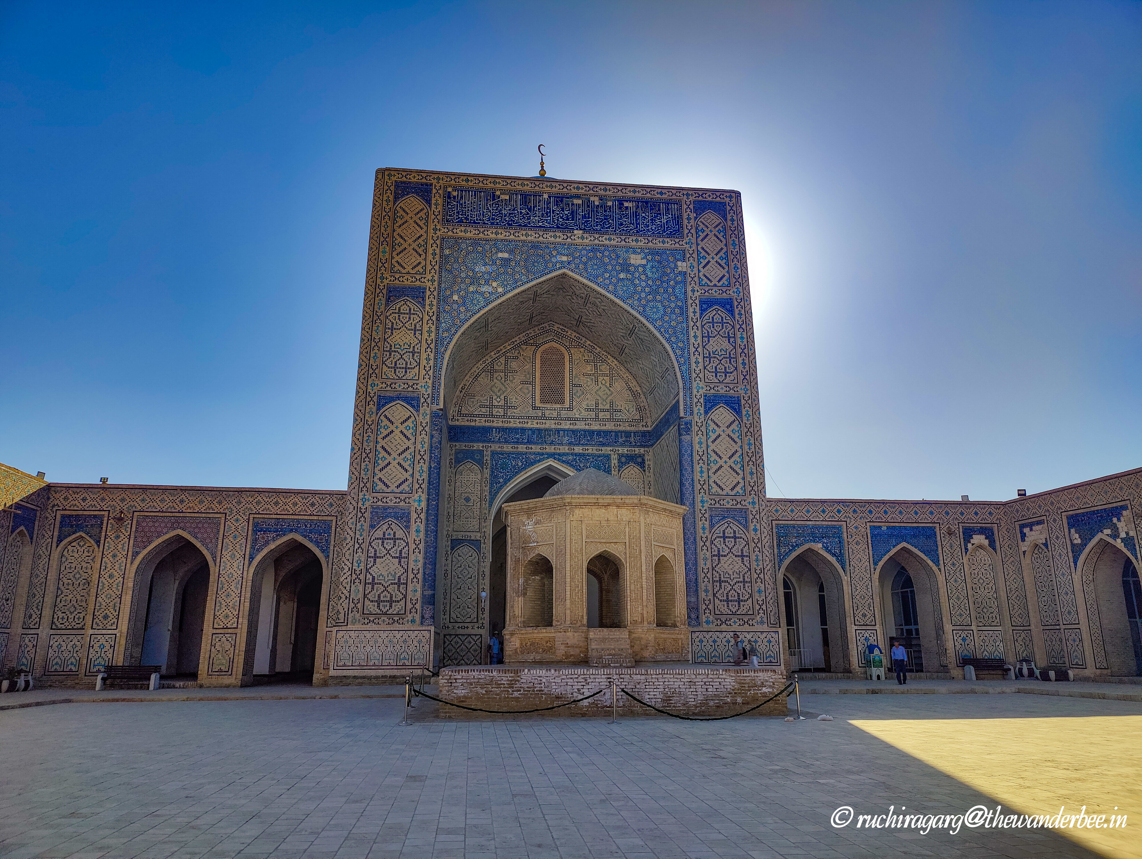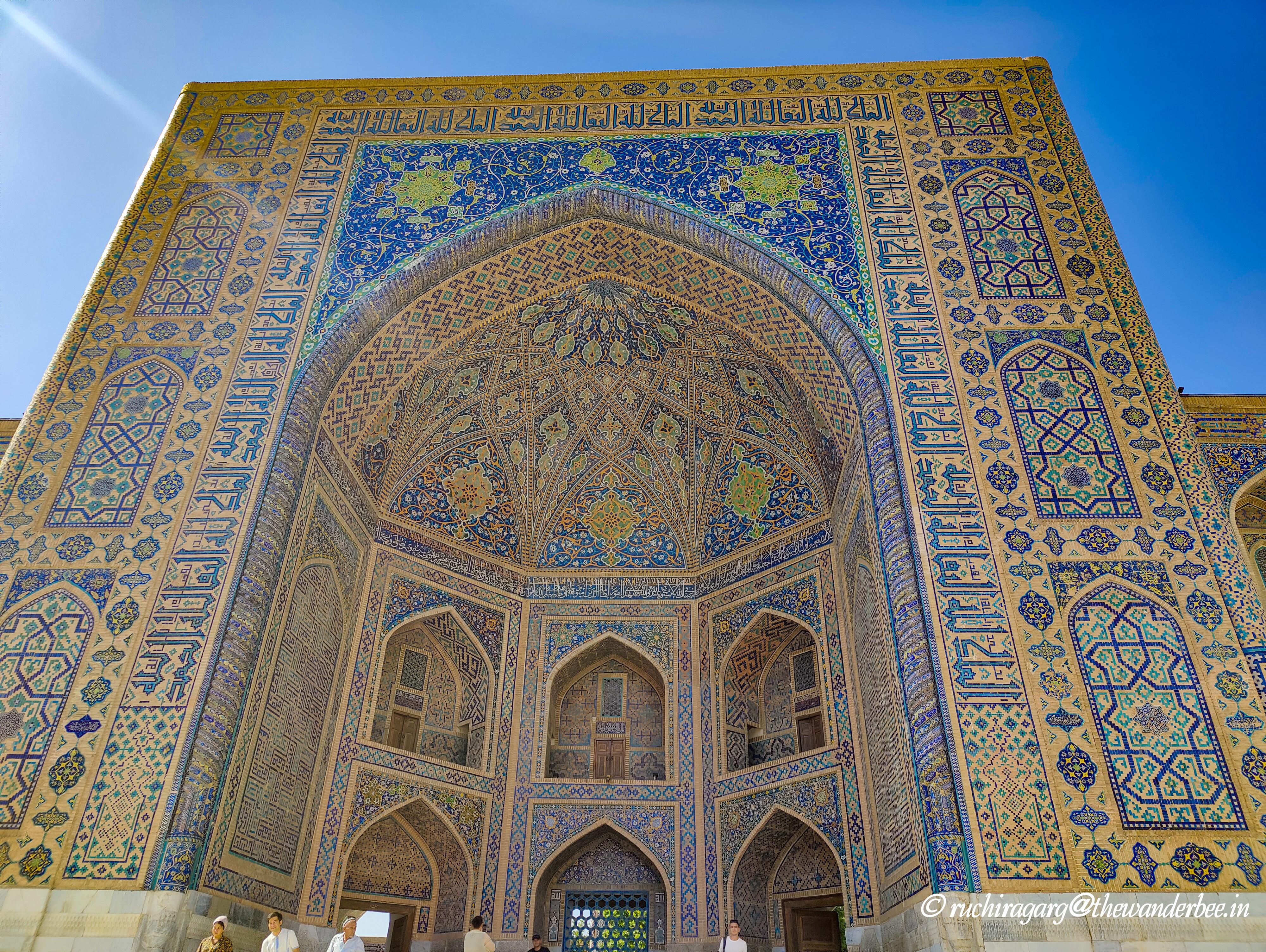 What really stood apart for me was the interiors of the mosque inside the Tilla-Kori Madrasah. There is a ticket for entering the main square and the madrasahs. Magnificent shades of pink, blue and golden and beautiful carvings left us gaping at them in awe. The ceiling of the mosque beautifully depicts the circle of life. Would recommend going inside each of the madrasahs for a view of the amazing interiors.
