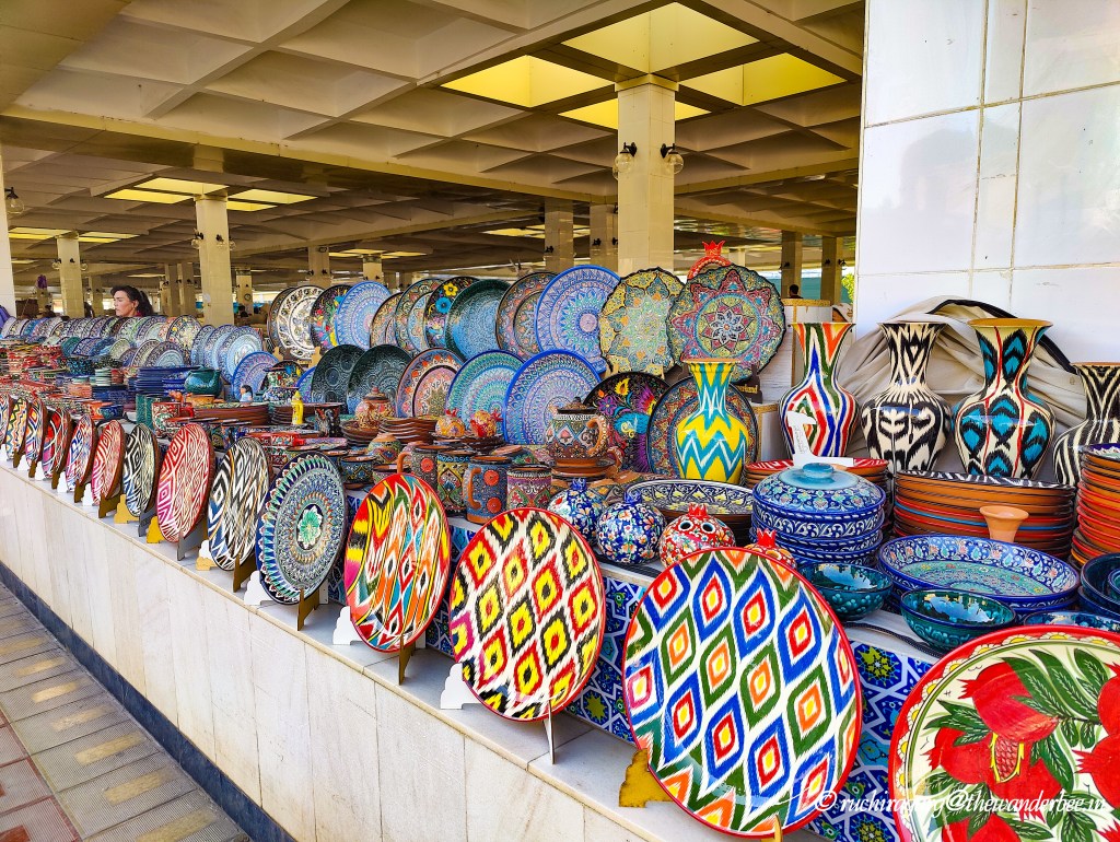 We discovered Uzbekistan’s rich embroidery tradition, boasting eight distinct schools of needlework. The stunning array of stoles, mats, bags, bedcovers, and wall hangings adorned with unique handiwork left us awestruck, particularly considering their affordability.