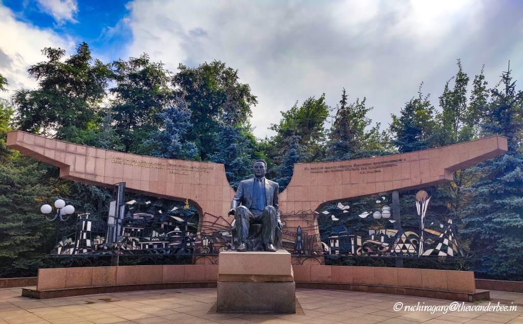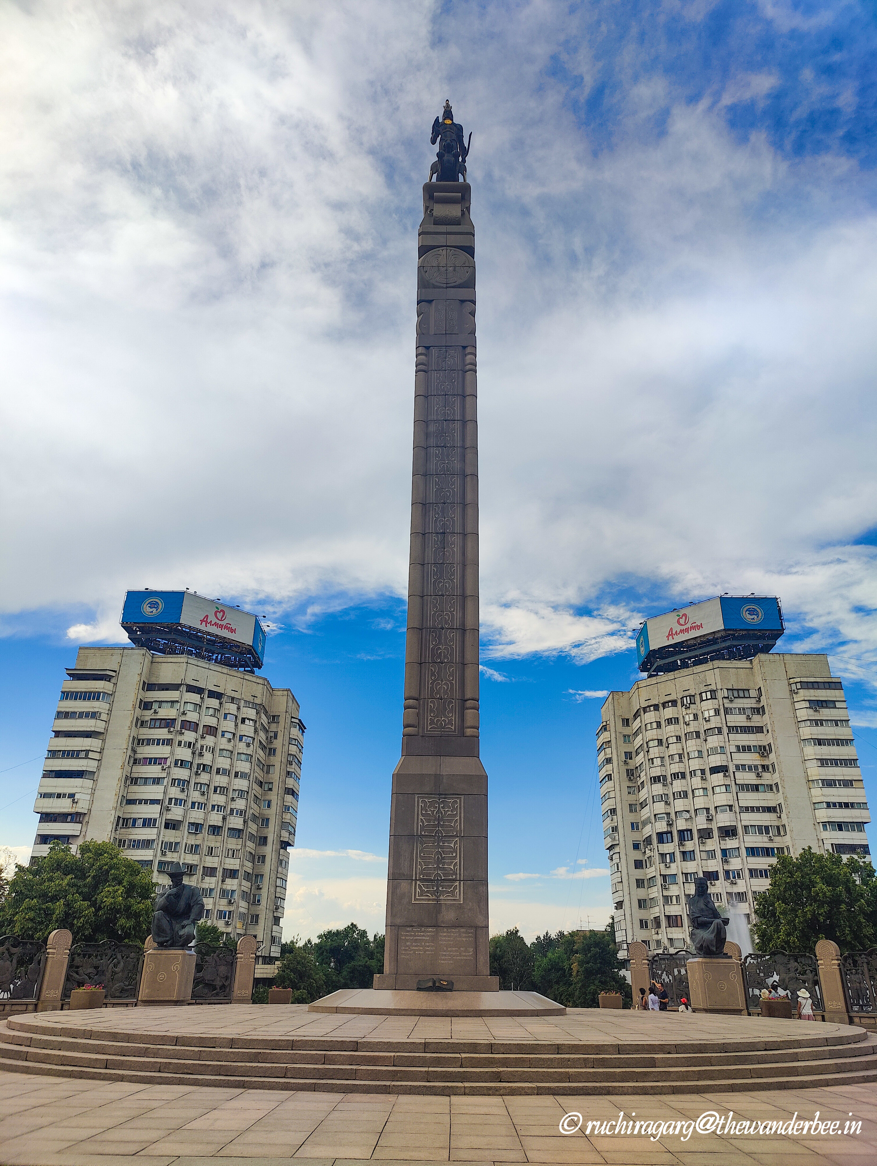 This park pays tribute to the heroic Panfilov Guardsmen, a group of 28 soldiers from the Alma-Ata Infantry unit who bravely defended Moscow during World War II against the German invasion. Named after General Ivan Panfilov, who led the 316th division, these soldiers, despite heavy losses, valiantly held their ground, significantly delaying the German advance towards Moscow and bolstering the city’s defense efforts. At the heart of the park stands a towering black monument depicting soldiers from all 15 Soviet Republics, alongside an eternal flame that solemnly honors the fallen heroes of the Second World War and the Eastern Front. The 28 Panfilov Guardsmen Park is not just a historical landmark but also a serene green space. As a visitor it offered us a moment to reflect on the sacrifices made by the soldiers and. It provided us a poignant glimpse into Kazakhstan’s wartime history and is a place of remembrance and reverence.