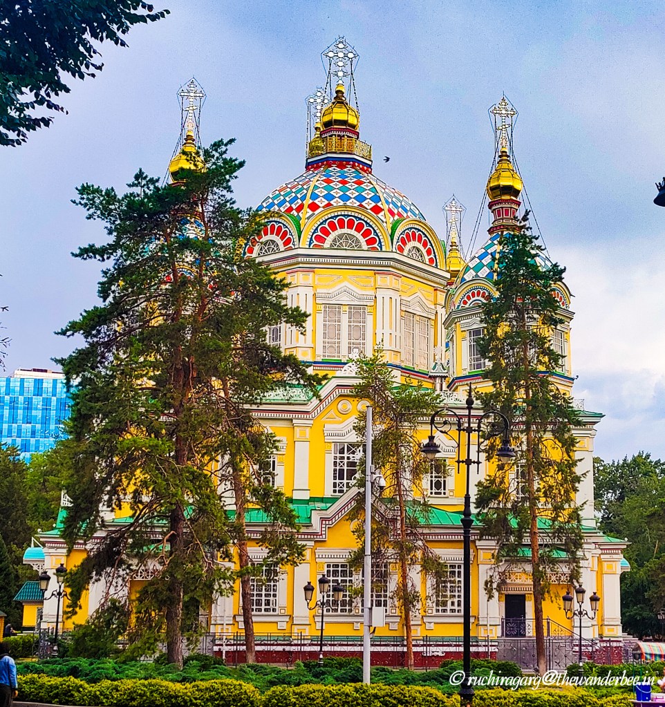 Also known as the Ascension Cathedral, is a striking architectural marvel located within the greenery of Panfilov Park. Named after its architect, the cathedral’s vibrant colour sets it apart as a notable landmark.